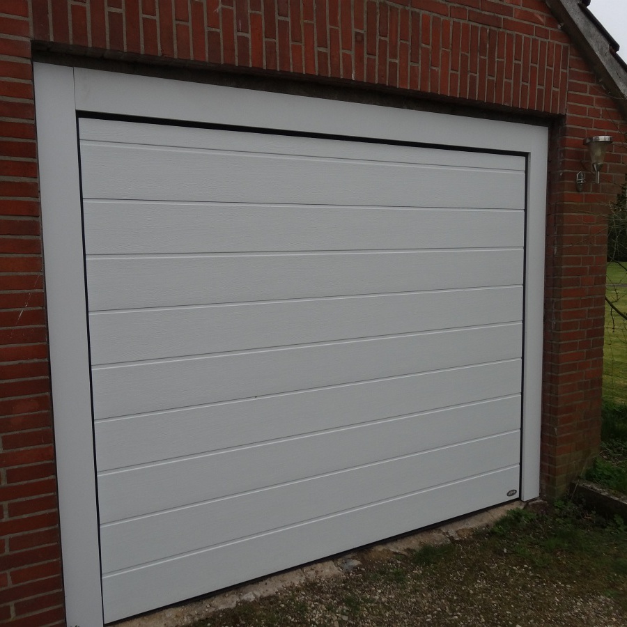 Mit einem modernen Sektionaltor von Novoferm läuft das Tor gerade hoch und schiebt sich unter die Decke. Alle Novoferm-Sektionaltore sind vollflächig isoliert, entweder 20mm (iso20) oder in 45mm (iso45) Dicke. In unserem Downloadbereich können Sie sich unsere Flyer bzw. weitere Beschreibungen runterladen. Sie haben die Möglichkeit zwischen verschiedenen Optiken (Motiven) und Oberflächen (Woodgrain, Satin etc.) zu wählen. Nach Belieben können Sie sich mit Farben oder auch Fenstern und anderen individuellen Gestaltungsmöglichkeiten zusammenstellen.