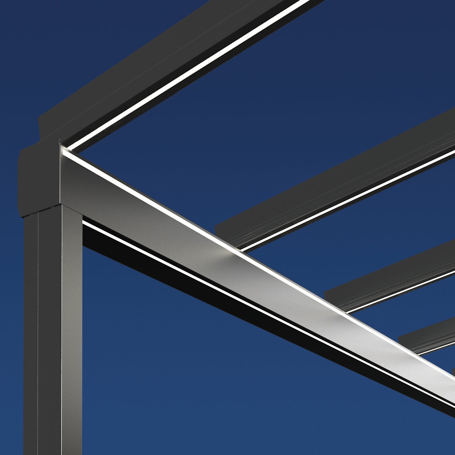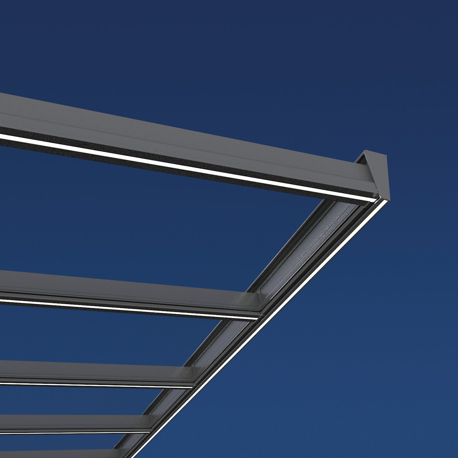 LED-Spots sind gut und schön, LED-Streifen sind zudem noch modern. Unsere Terrasign-Dächer sind statisch so ausgelegt, dass in jedem Sparren, Wandanschlussprofil oder auch unterhalb der Rinne ein Lichtelement eingebaut werden kann. Die Verkabelung ist komplett unsichtbar. Die LED-Line fügt sich nahtlos in die Dachelemente ein und ist unauffällig am Tage. Wenn Sie wollen können Sie mit dem LightFixx LED-System die Nacht zum Tage machen oder auch dimmen. Im Gegensatz zu allen anderen Terrassendach-Herstellern können alle Terrasign-Dächer problemlos mit einer LED-Beleuchtung nachgerüstet werden. Andere Hersteller müssen Gläser, Sparren oder noch mehr Elemente demontieren um eine Terrassendachbeleuchtung nachträglich zu montieren.